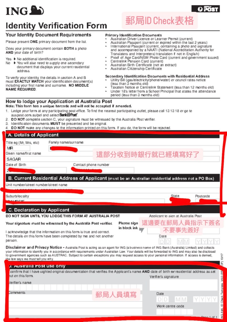 如果沒有澳洲駕照的話會收到身分驗證表,需要列印出來到郵局去做驗證,約一兩天後,會收到簡訊通知你的身份認證成功,便可進行帳戶開通