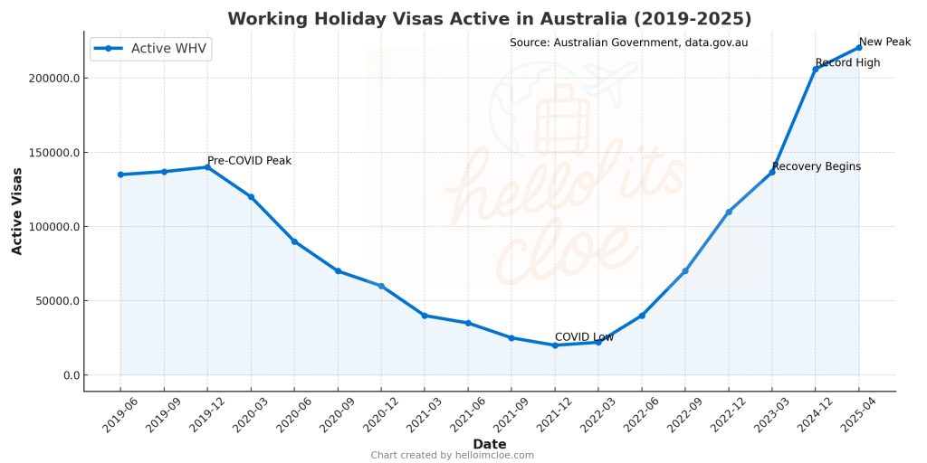另外一個大家常問的問題是,「現在還適合去嗎?」「打工度假的人是不是很多?」疫情過後,打工度假的熱潮又回來了 ,澳洲又屬打工度假國家中薪水數一數二高的,世界各國的人紛紛湧入澳洲,那到底這時候還適不適合去澳洲打工度假呢?大家可以先看下圖我做的表單