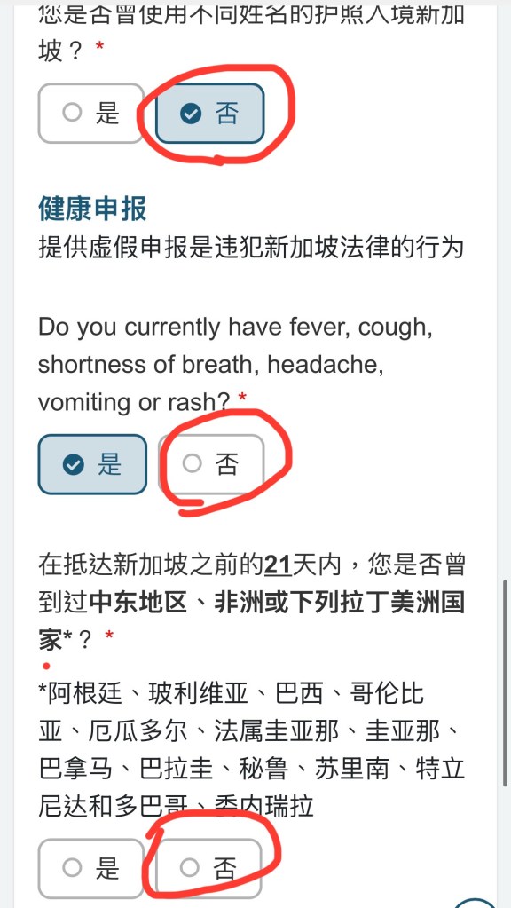 這邊健康申報我後來才發現我自己填錯,要選否喔!