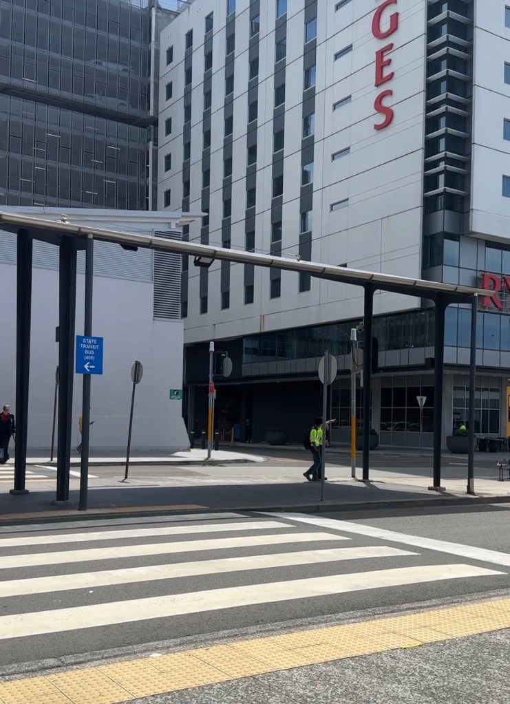 首先,走出機場後向右轉,看到RYDGES HOTEL就代表你走對了
