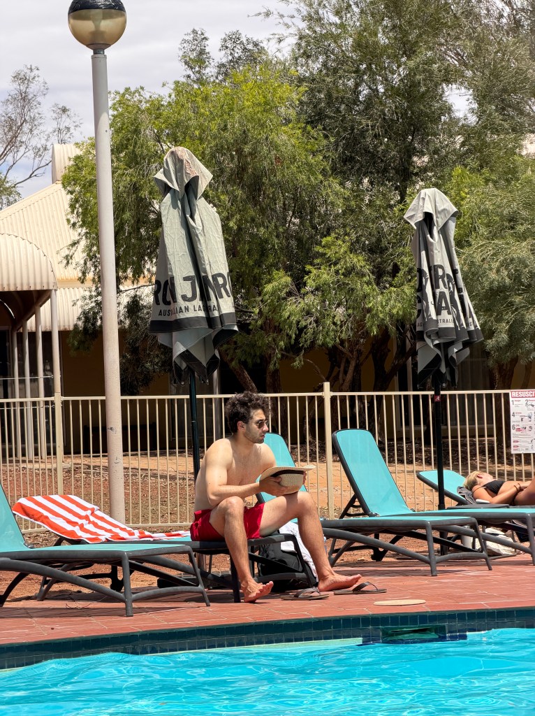飯店有游泳池,躺在躺椅上很悠閒時間過超快,運氣好還有帥哥可以看😂
