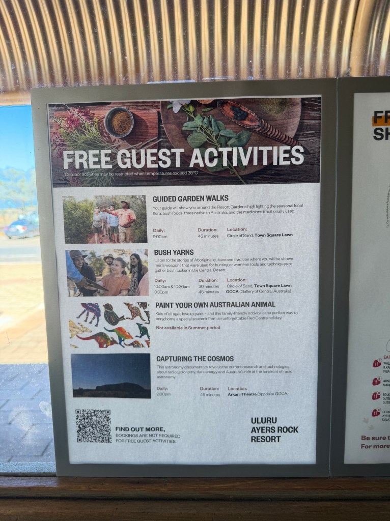 另外還有Lookout可以看日出日落和觀星,可以看到kata tjuta和uluru,景色蠻好的!