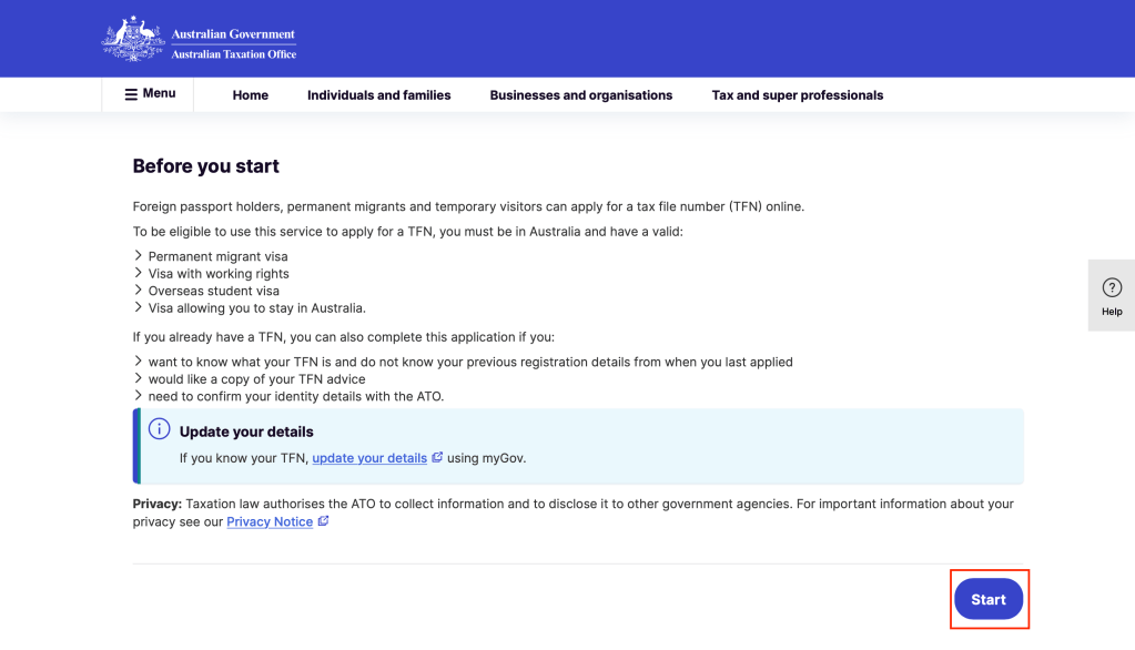 稅號TFN, Tax File Number是澳洲三大號之一,只要在澳洲工作就一定需要稅號,每個人的稅號都是都是獨一無二的,有點類似台灣身分證字號的概念,澳洲稅務局也會依照這組號碼來追蹤每個人繳稅的狀況,要注意的是⚠️稅號是要在入境澳洲之後才能申請的,接下來就一步步帶著大家申請稅號