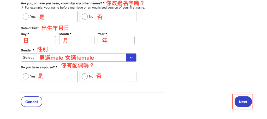 依照個人情況填寫,填寫完畢按next
