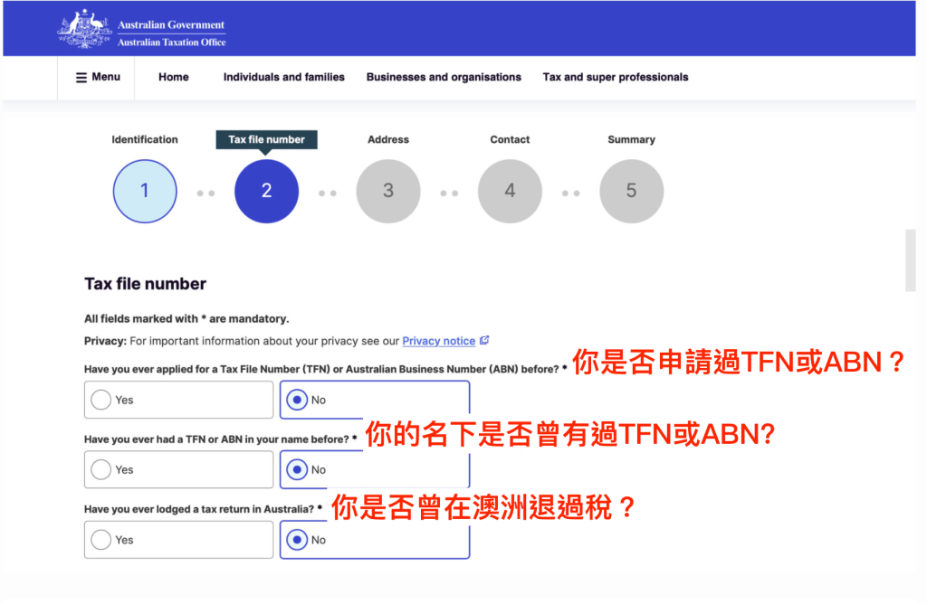 之後點選apply online for a TFN using the IAR