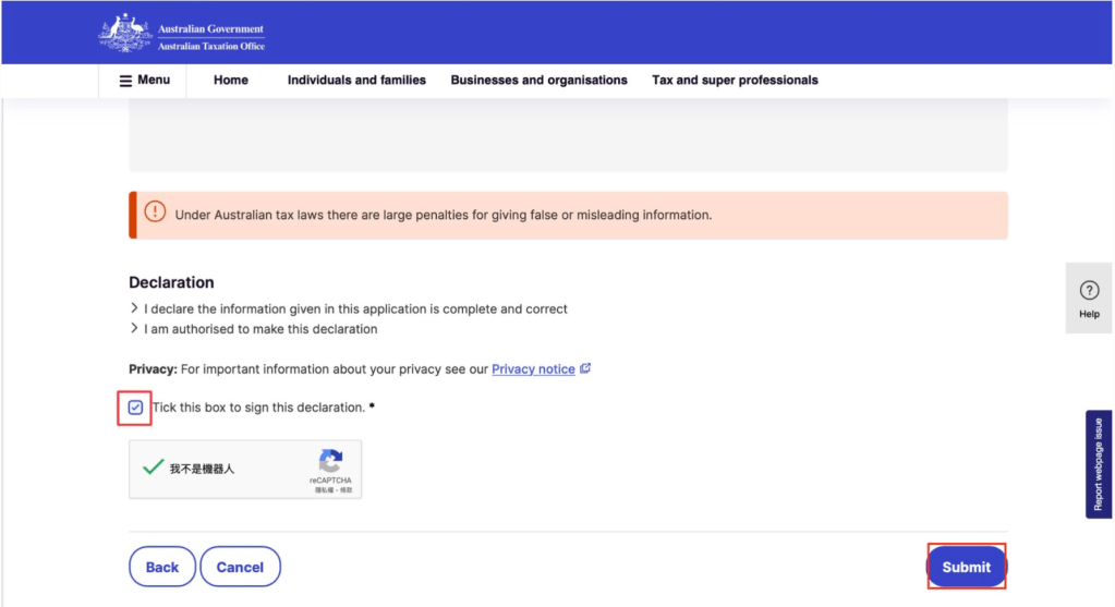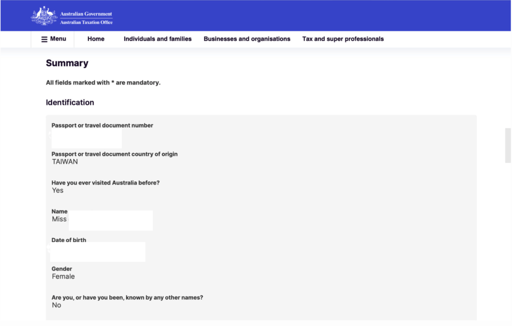 送出申請表後,會有一組”ATO receipt ID“的數字號碼,這個號碼是你的申請稅號的編號,請記下來以便日後查詢進度用,稅號都是採紙本寄送,會用郵局寄到你填寫的郵寄地址